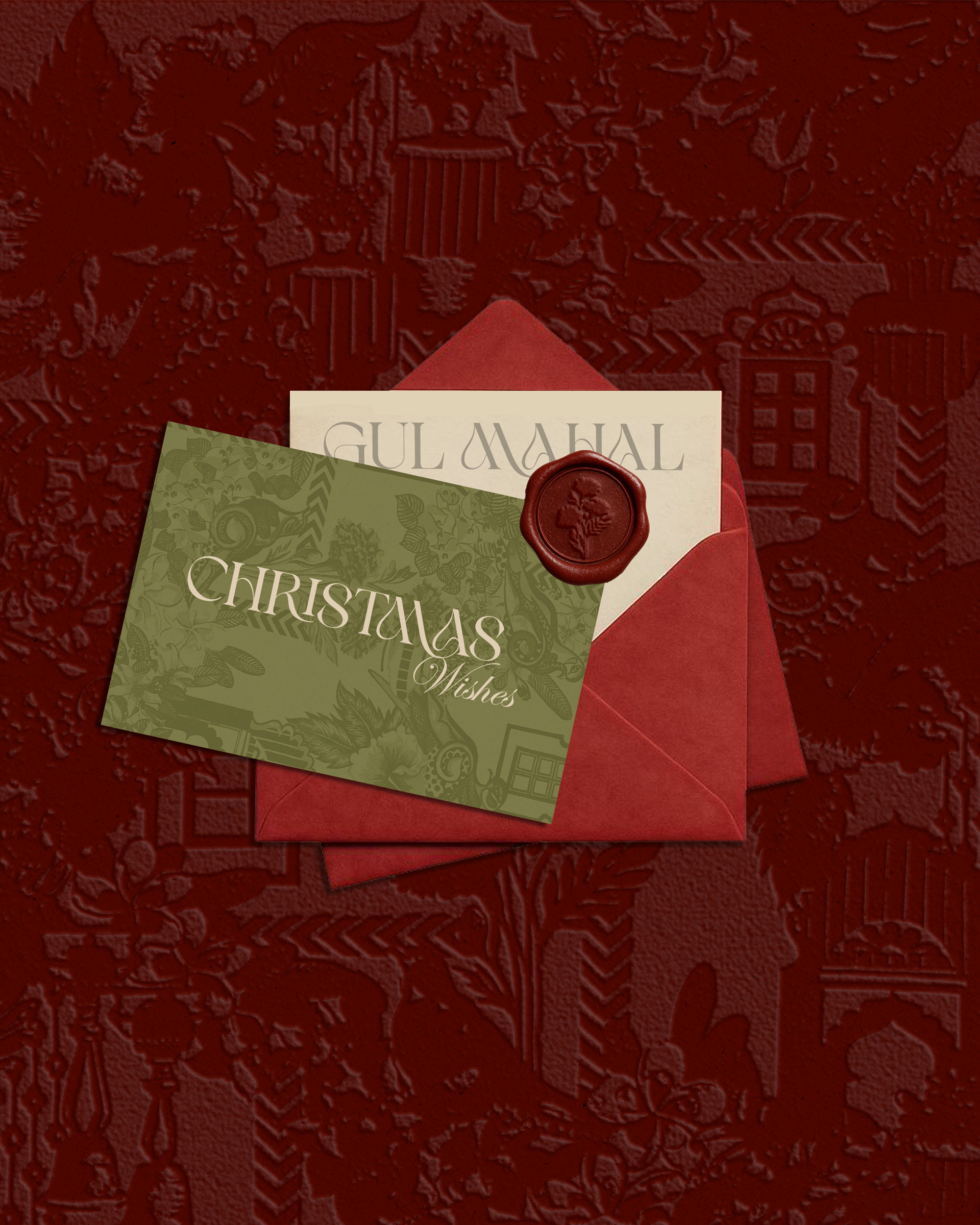 Christmas at Gul Mahal is an Indian hospitality invitation and event branding concept leaning into narrative-driven visual experiences for spaces created with graphics, prints and illustrations.